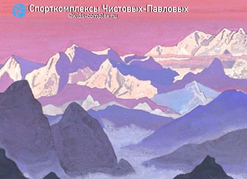 Итак, девочка любит розовый и радугу. И родители (вместо того, чтобы запечатать все в актуальный монохром), идут ей на встречу. Но вот незадача - скалодром горы в розовом цвете? "Бывает!" - ответили мы и прислали на выбор десяток картин Рериха. "Вот эта подойдет!" - сказали родители, выбрав нежный сюжет Гималайских вершин в оттенках фиолетовых, розовых, коралловых и серых тонов. Мы взяли два прототипа от Рериха - выбранный заказчиками сюжет по цвету (центральный сверху) и другой - по форме (правый сверху), поскольку требовалось вписать скалодром в вертикальный простенок 2610х1200 мм. И, смотрите - удалось. И если вы думаете, что Рерих - фантазер, то поехали как-нибудь с нами в средние Гималаи. Там такое легко увидеть (левый сверху). А помните, в детстве на рисовании. Ребенок рисует два солнца. Бабушка, грозно: "Так не бывает!" Бывает, бабушка, бывает, просто изучи начальный курс астрономии и системы с двумя звездами. Много всего бывает в нашем мире, еще больше - в мире наших детей. Спасибо заказчикам, которые оставляют детям цвет, яркость, возможность выбора. Любим вас, друзья!