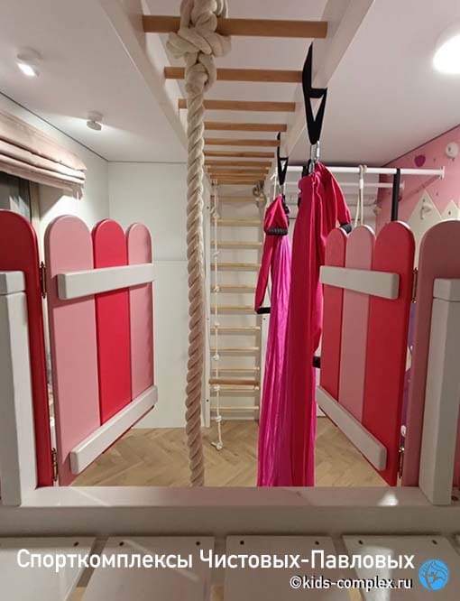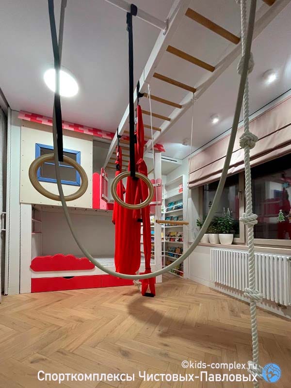 На днях мы навестили наших недавних заказчиков, чтобы проверить снаряды и пообщаться. Порадовались тому, как семья обжила комнату, а ребенок - комплекс. Полюбовались девочкой, ловко и бойко скакавшей на лиане. И решили еще раз написать про этот яркий комплекс, чтобы разобрать его детали и обсудить интересную тему - комнату в целом.