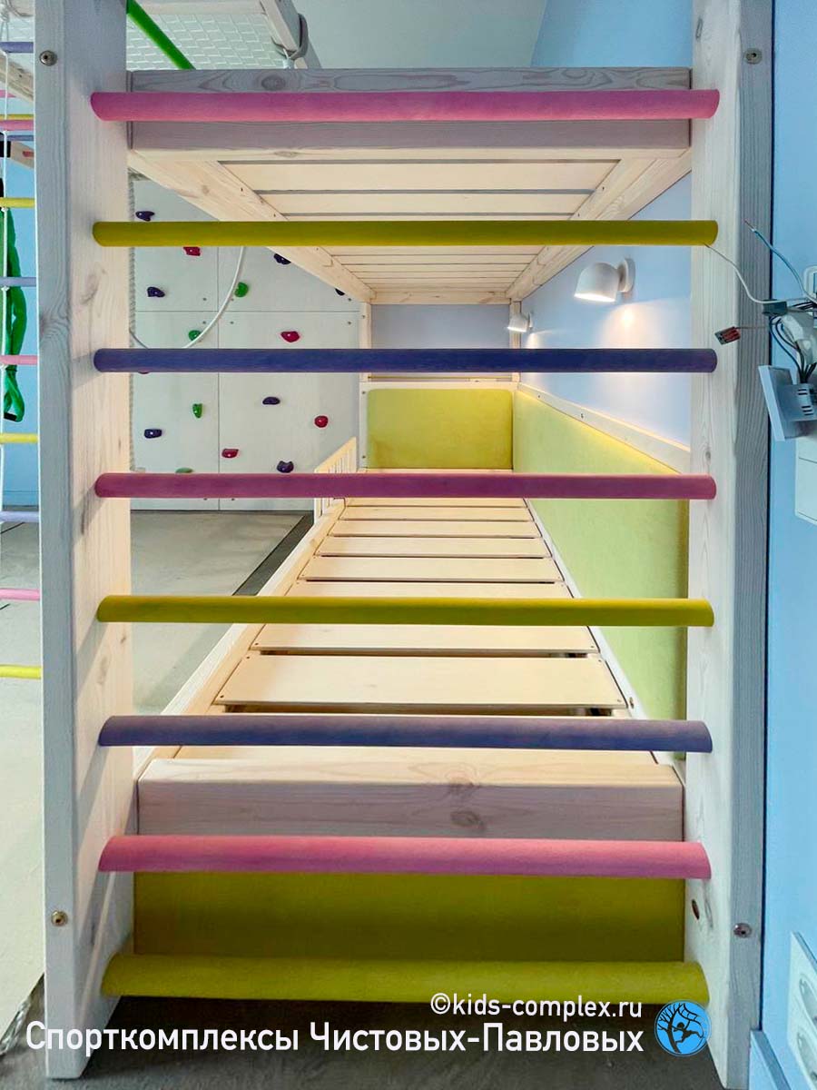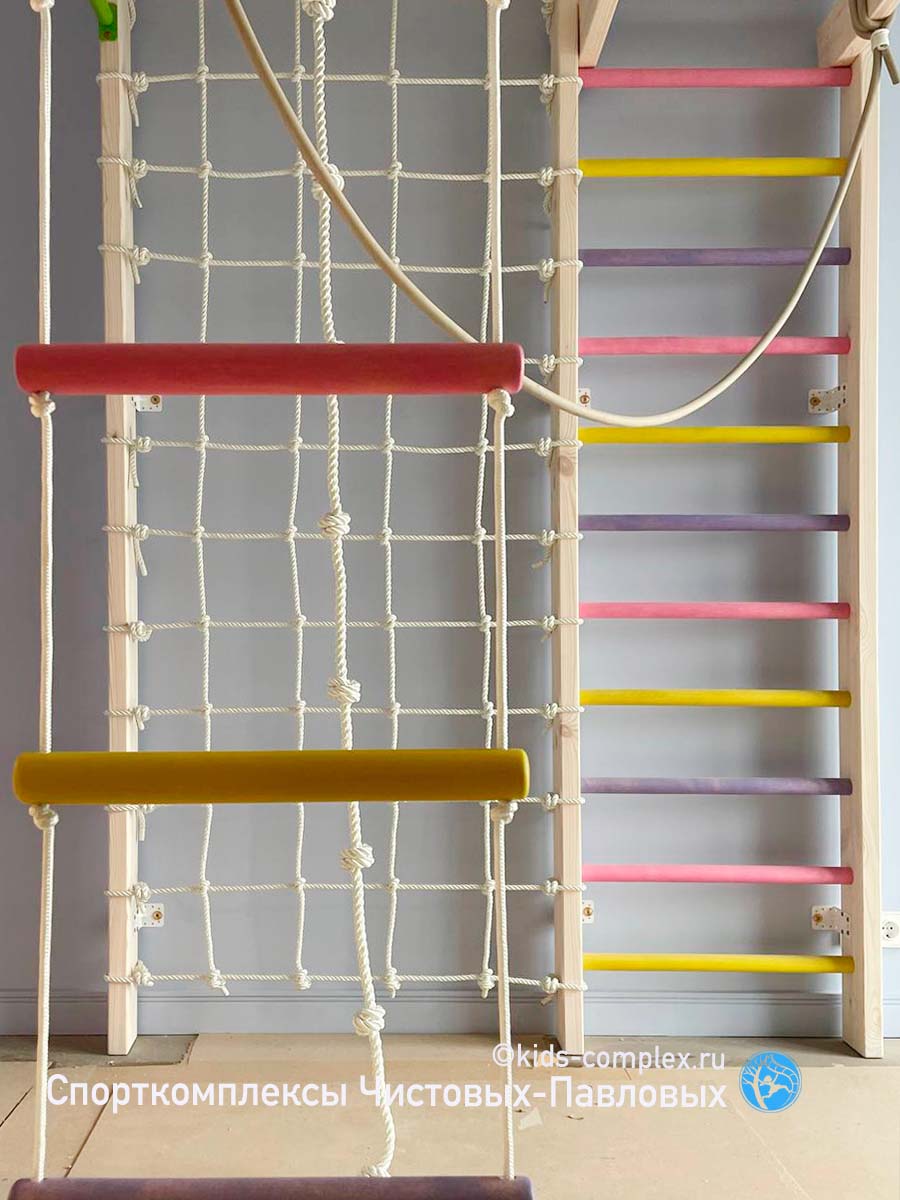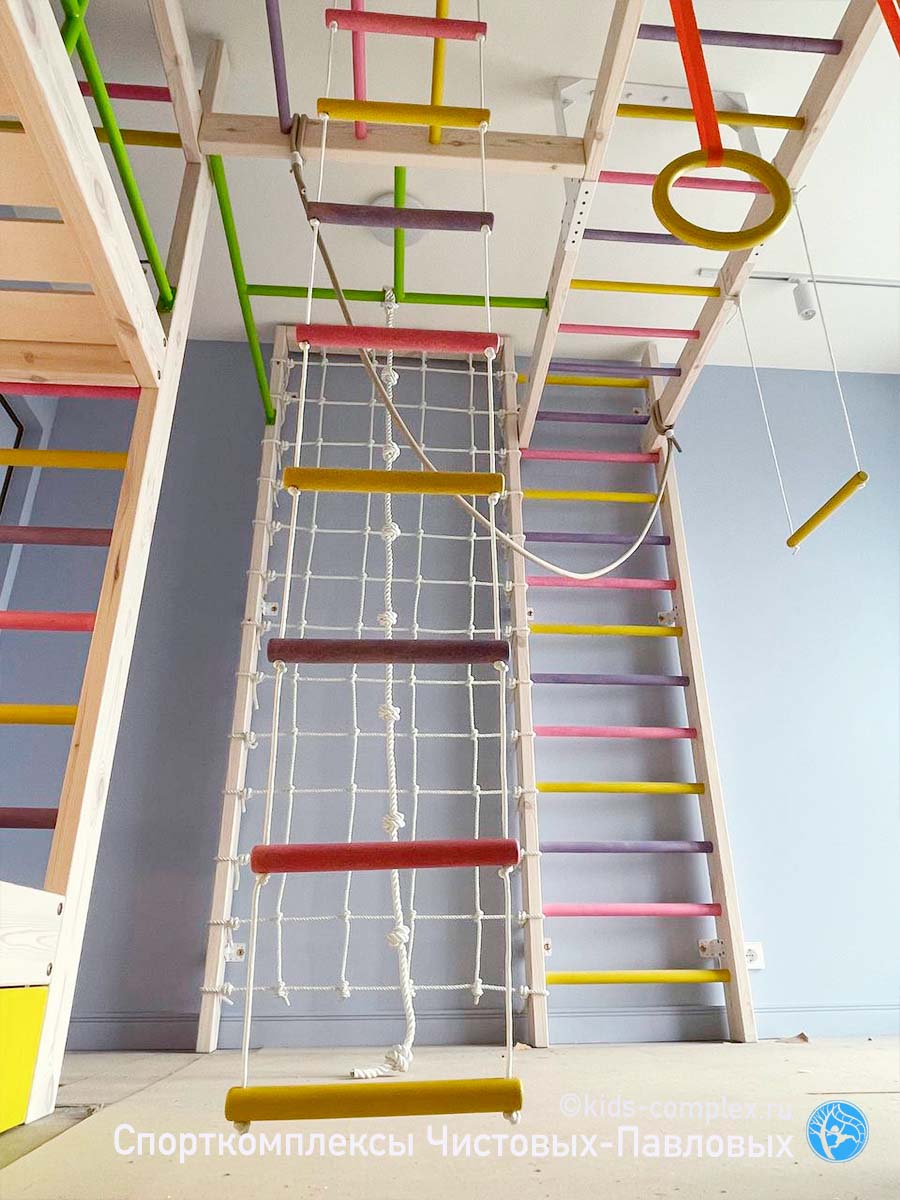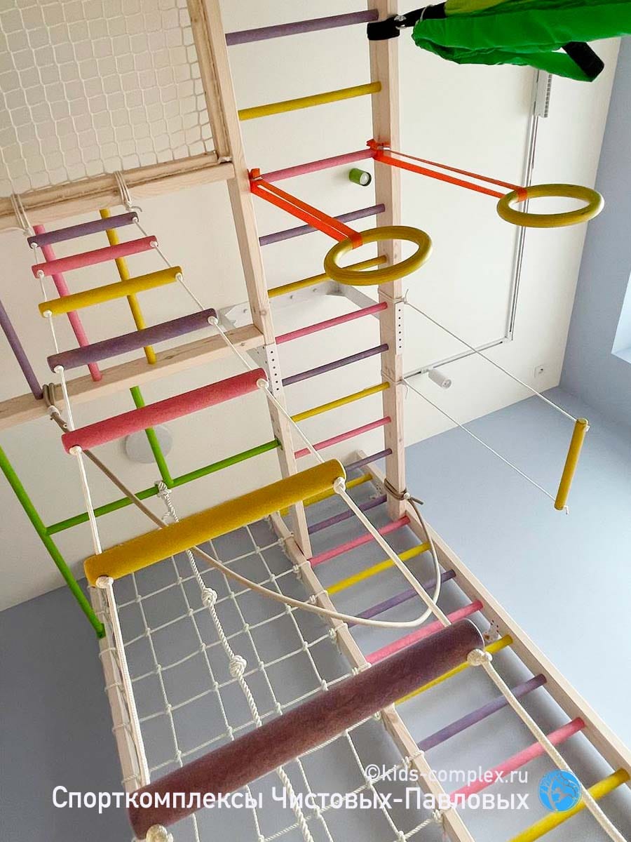 Но отвлечемся от кроватки. Все это затевалось еще и для того, чтобы создать в комнате сенсорную зону (зону лазанья) достаточную для детей (одного или нескольких) на многие годы. Сейчас ребенку 5 лет. Но здесь все сделано так, чтобы лазить (а позднее - заниматься спортом) он мог в этой зоне как минимум до подросткового возраста (а то и позже). Что это обеспечивает?