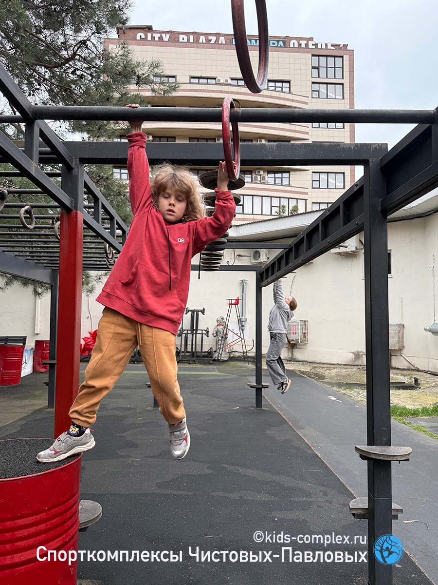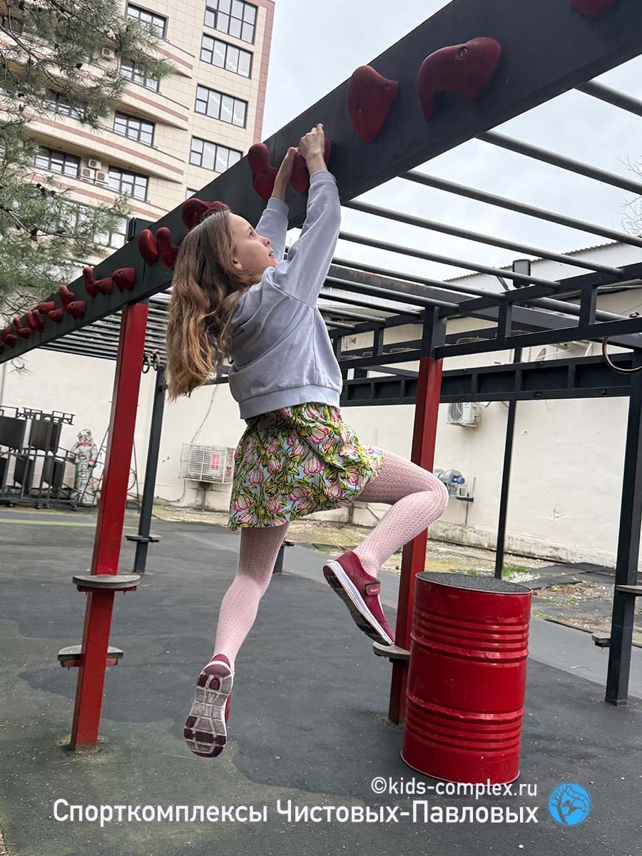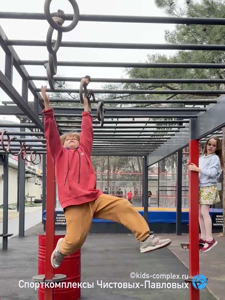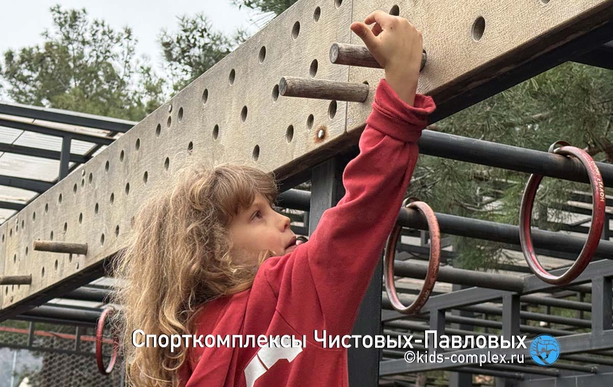 Уважаемые взрослые, если ваши снаряды не продуманы для подхода (схода) детей, их это не остановит, но спровоцирует излишний травматизм. Мы считаем, что у ребенка должен быть выбор спуститься или спрыгнуть, не нужно провоцировать его прыгать принудительно. Применимость полосы препятствий умеренно разумная, на уличных комплексах. Фиксация колец жгутами к турникам снизу осмысленна, так как срок службы деревянных колец на улице меньше, чем у металла и в средней полосе РФ их желательно снимать на зиму.