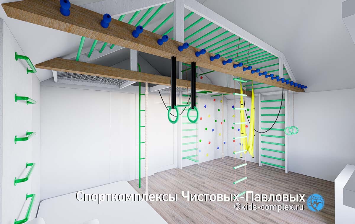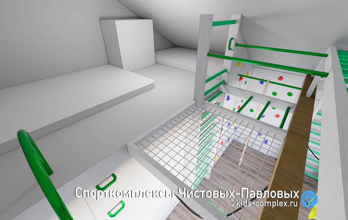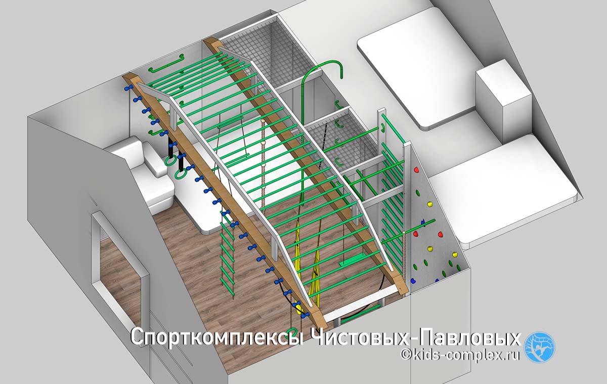 Зеленый комплекс: Рукоход в высокой части двускатной мансарды
