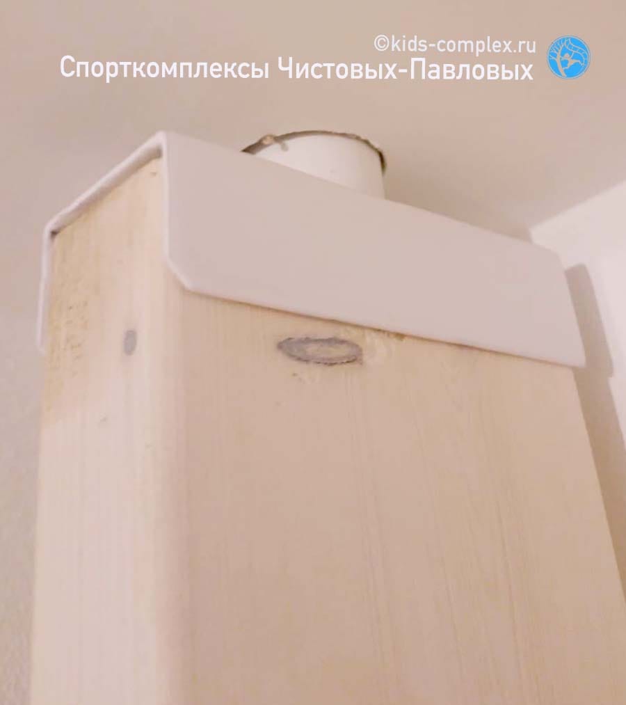 Вы уже возможно поняли (планируя свою зону или изучая материалы нашего сайта), что для организации детского лазанья гипсокартон - зло. Он удорожает всю систему. Вот как и здесь. Две стены из трех были гипсокартонные. И гипсокартонный потолок. Хуже такого сочетания только ГКЛ стены + натяжной потолок, это еще неудобнее. А с ГКЛ потолком можно обойтись просто. Все стойки комплекса, которые ставятся к ГКЛ стенам, ставятся враспор пол-потолок, используется бетонная часть потолка, в которую проходит крепежный элемент из металла через ГКЛ. Здесь это показано на примере стоек для шведской стенки и стоек для скалодрома. Скалодром в таком случае приходится делать на каркасе.