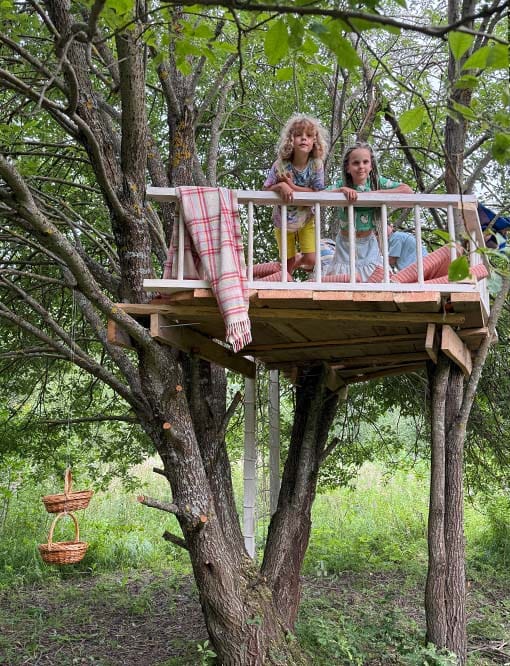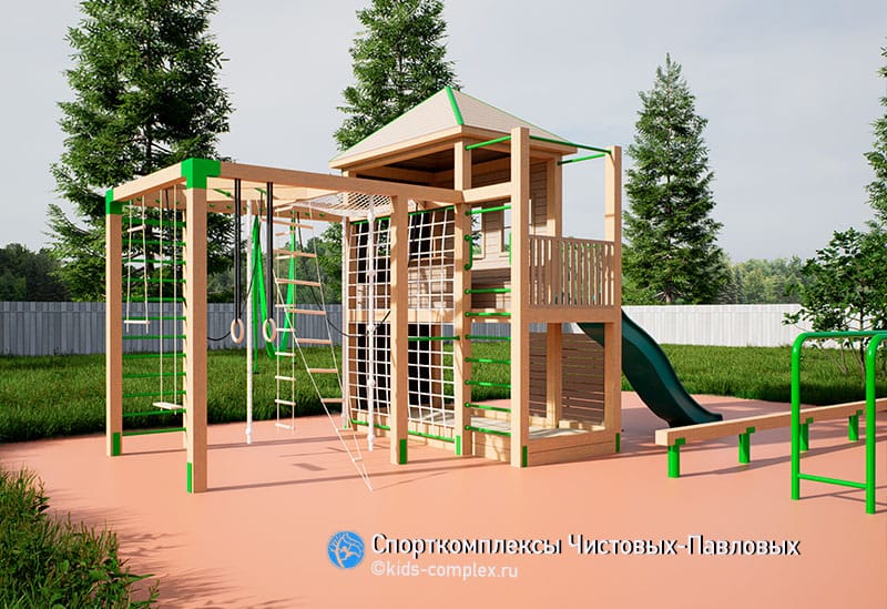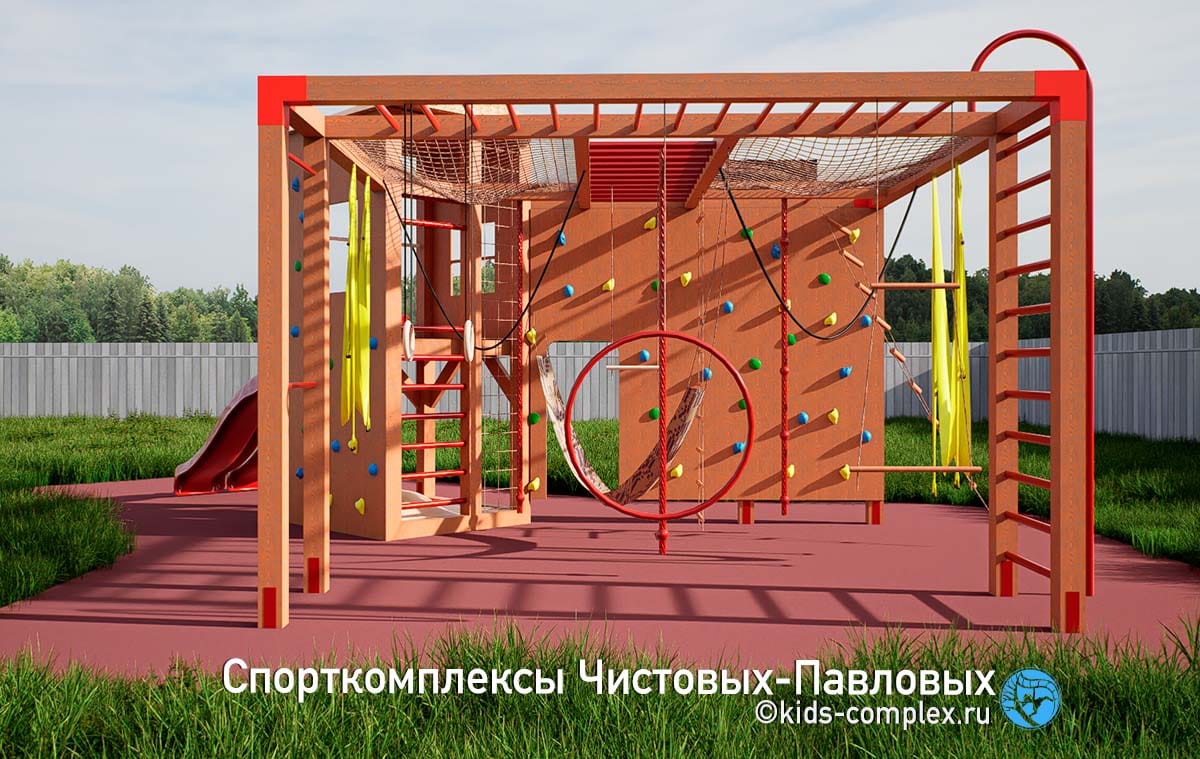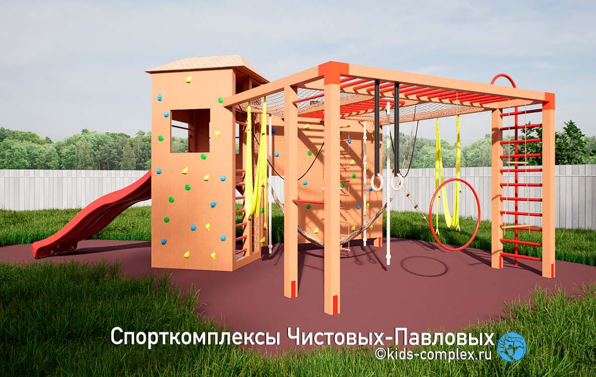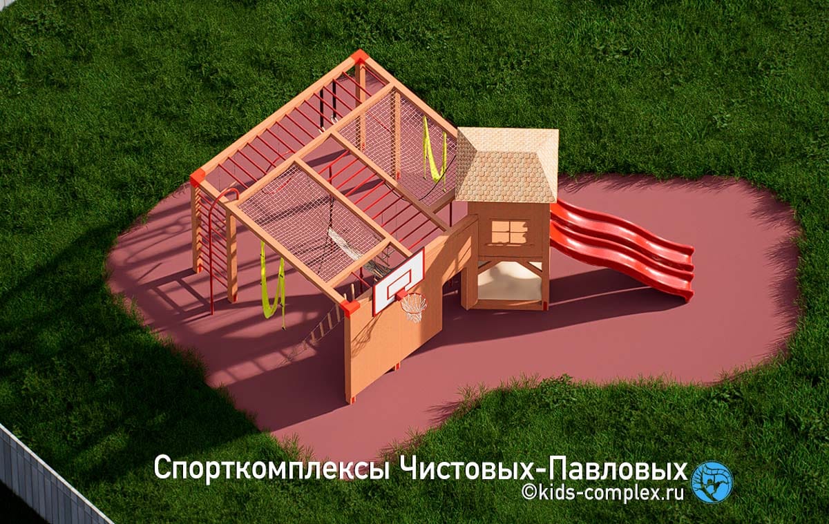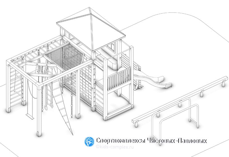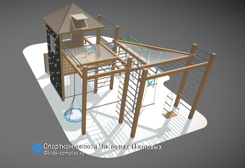Здесь мы покажем каркасы для тех, кто хочет совместить игровую зону со спортивной, полностью сохранив спортивную функциональность. Идея этих комплексов восходит к домикам на дереве. Мы исследовали идею домика на дереве применительно к нашим российским дачам и коттеджам и пришли к закономерному выводу - мало у кого есть на участках деревья, пригодные к строительству на них любых, даже самых компактных объектов. Для некоторых семей решением может быть задействование прилегающего к СНТ или коттеджному поселку леса, где можно оборудовать детям для игр лаконичную площадку между стволами нескольких деревьев. Но в эпоху, когда большинство прилегающих территорий тоже являются частными вряд ли такое может быть повсеместно распространено.