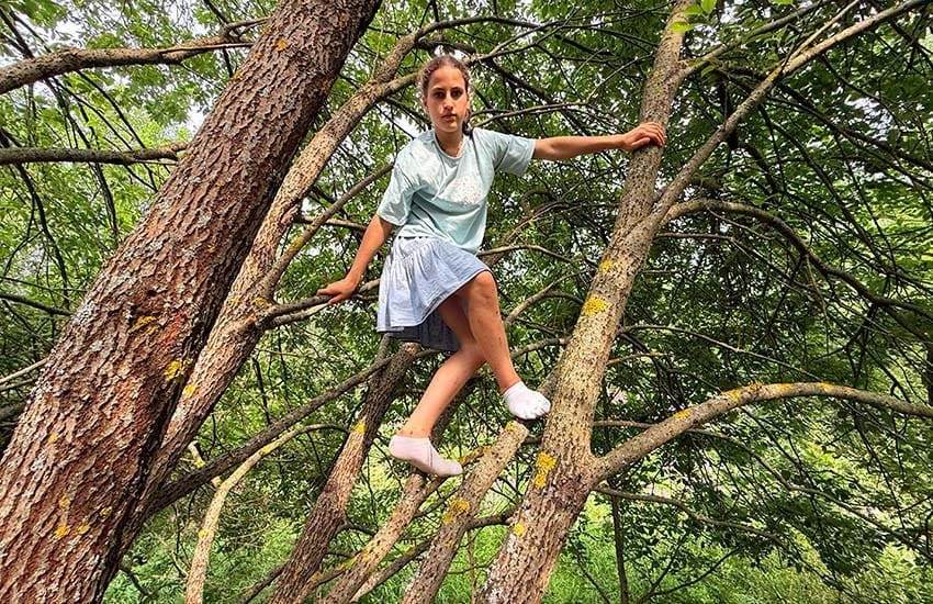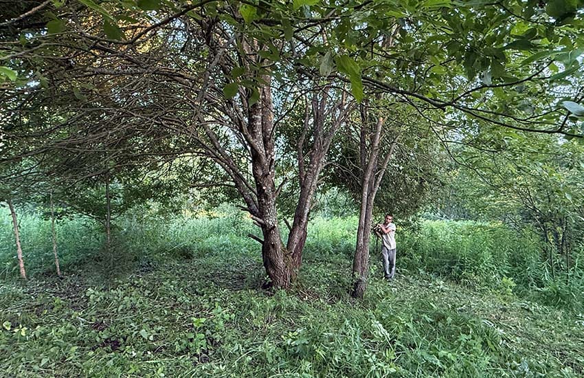 Площадка для игры между стволами дикой ветлы (разновидность ивы), Подмосковье.