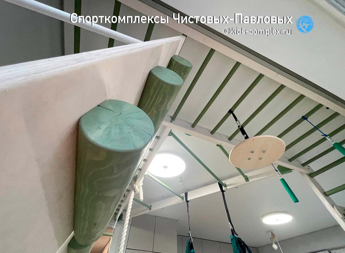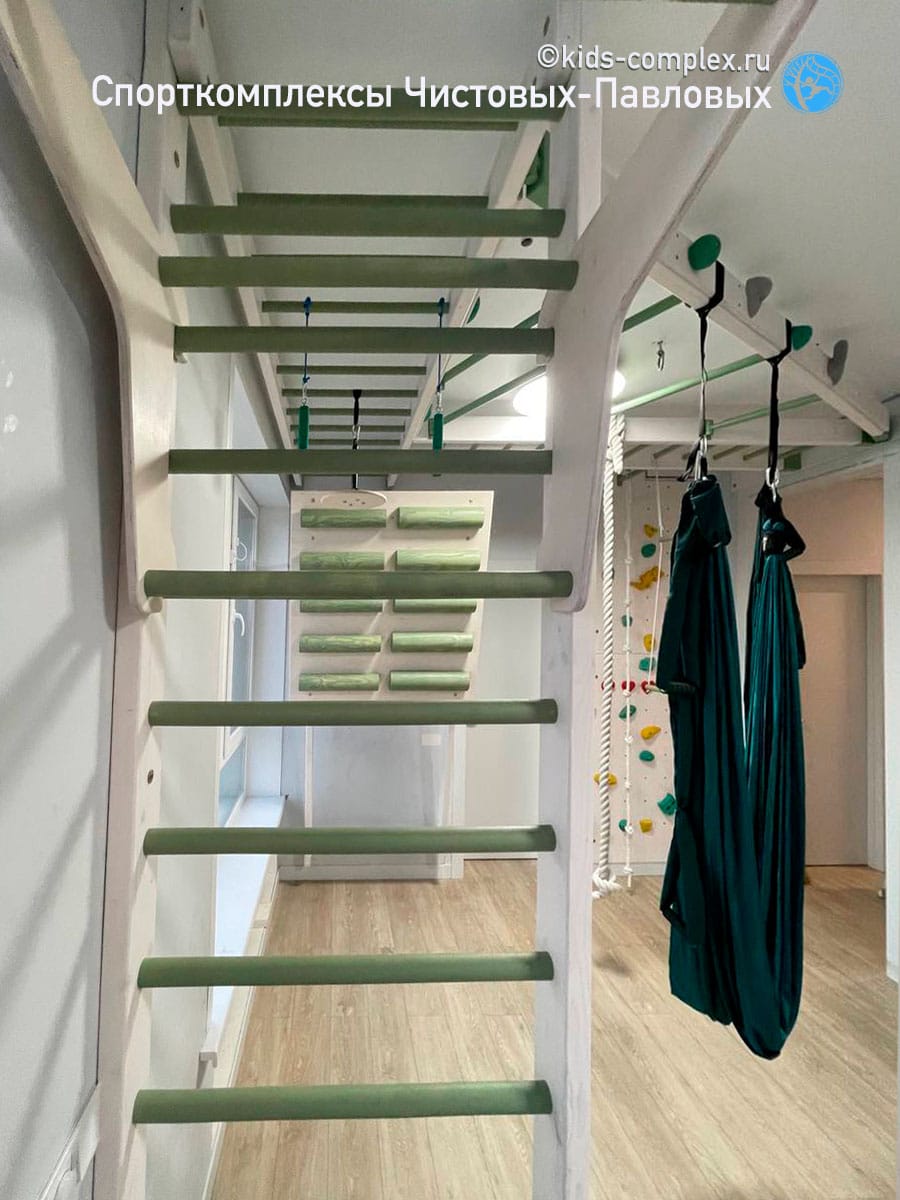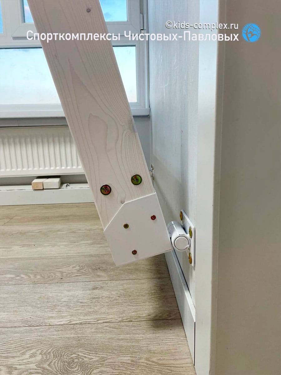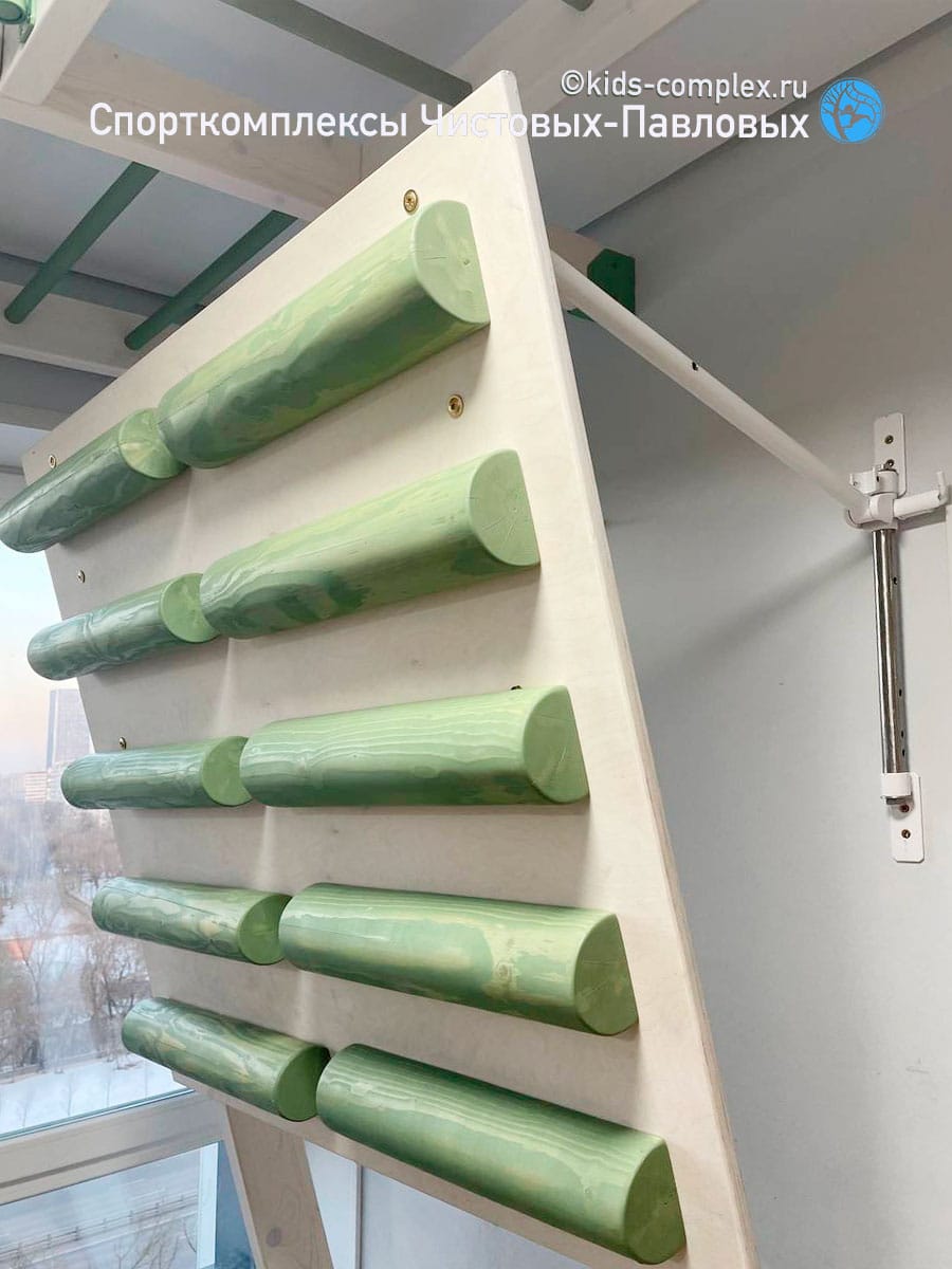 В домашних условиях мы обычно не имеем такой высоты как в спортивном зале. Приходится рассчитывать на ту высоту и тот размер простенка, который имеется. Например здесь, есть простенок 1200 мм, а потолок около 2770 мм, но простенок еще и снижен на 240 мм за счет рукохода. В итоге кампусборд имеет всего 5 ступеней, но это тем не менее даст основу для регулярной тренировки. Сам по себе кампусборд - автономный снаряд, соседство со спортивным комплексом ему не нужно (скорее мешает). Но, если в квартире нет для него отдельной стены, то он может быть встроен как один из пристенных снарядов. В этом случае, поскольку кампусборд перекрывал окно, мы сделали его откидывающимся от стены, чтобы его можно было убрать в моменты между тренировками. Подробно про этот сюжет рассказано в посте по ссылке.