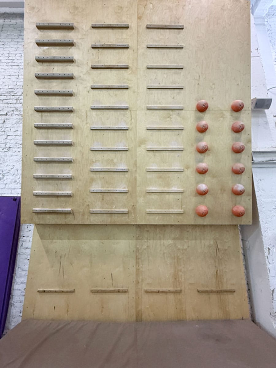 Самый большой секрет в освоении этого снаряда в том, что начинать нужно с больших планок, имеющий карман для пальцев. Чем меньше планка, тем сложнее за нее зацепиться, удержаться, тем более, подняться на ней. На кампусборде, показанном на фото, сечения следующие.